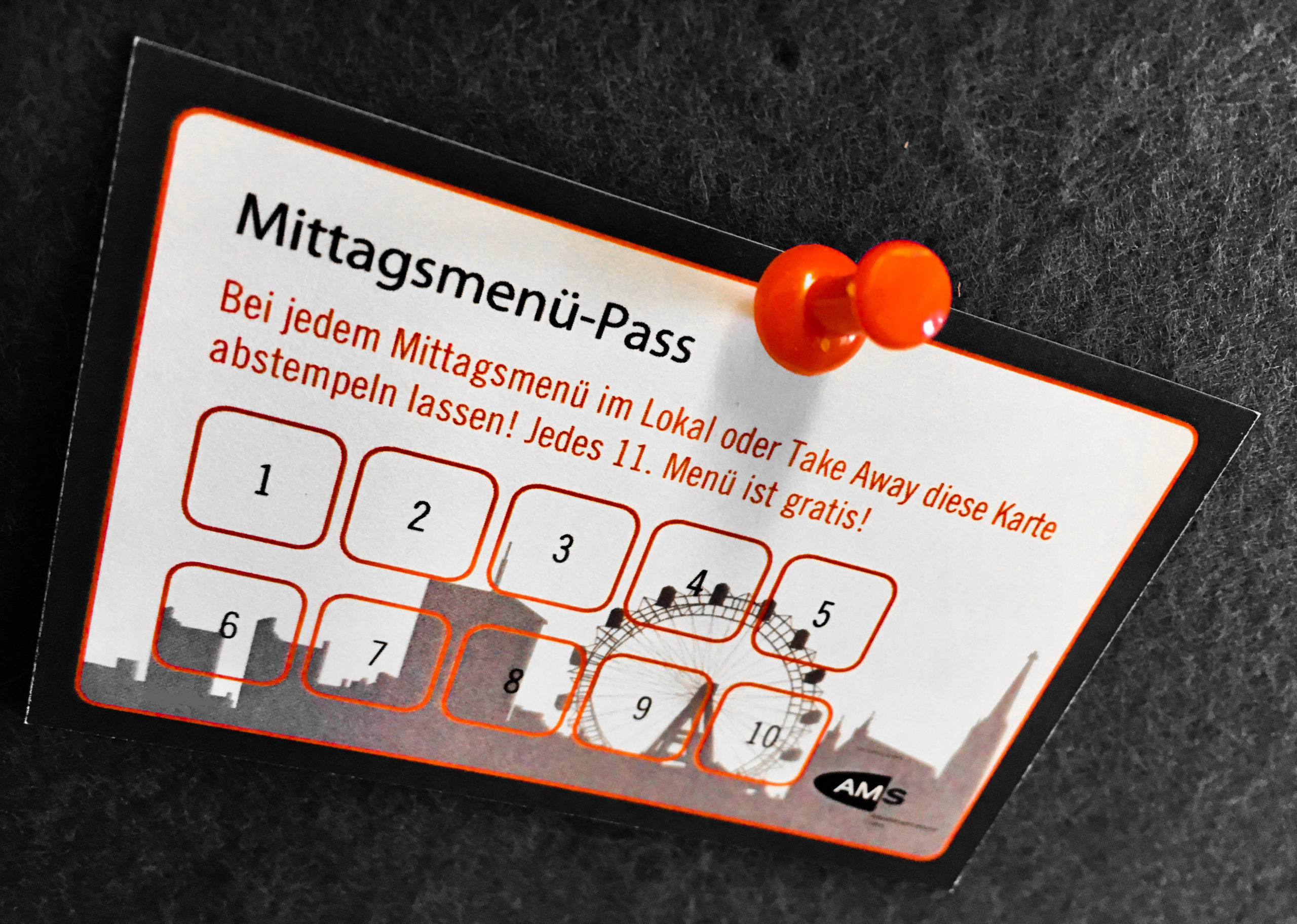Bei jedem Mittagsmenü im Lokal oder Take Away diese Karte abstempeln lassen! Jedes 11. Menü ist gratis!